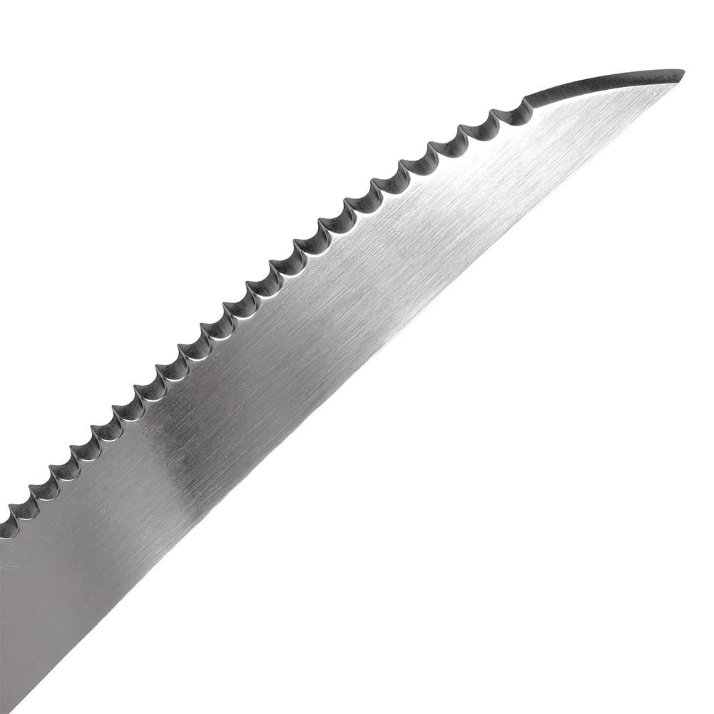 Zoubkování snadno projede kůrkou i vláknitou strukturou masa a zajistí čistý řez bez mačkání surovin.