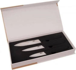 Tato univerzální sada obsahuje malý, střední a velký nůž pro přesné krájení, porcování i loupání. Plná keramická čepel poskytuje hladký řez, potraviny se na ni méně lepí a lépe si zachovávají vitamíny a nutriční hodnoty. Díky ergonomickým rukojetím z kvalitního plastu v černé barvě se nože pohodlně drží a nekloužou v ruce.
