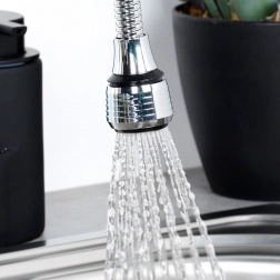 Vylepšete svůj dřez či umyvadlo pomocí flexibilního perlátoru, který napovzdušňuje vodu a tím snižuje její spotřebu bez ztráty komfortu. Díky dvěma režimům snadno přepnete mezi soustředěným proudem a jemnou sprchou – ideální pro oplachování nádobí, mytí rukou i citlivé povrchy.