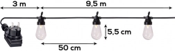 Rozestupy 50 cm mezi žárovkami a 3 m přívodní kabel zaručí rovnoměrné osvětlení a flexibilní umístění zásuvky.