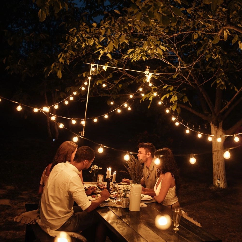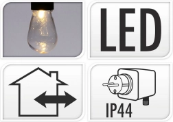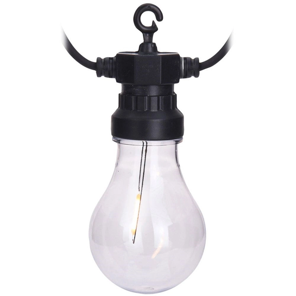 Každá objímka má praktický háček pro rychlou a bezpečnou instalaci na pergolu, plot či větve stromů. Lehký a snadno udržovatelný set poskytuje rovnoměrné rozložení světla díky vzdálenosti 50 cm mezi žárovkami a dostatečné 3m přívodní šňůře.
