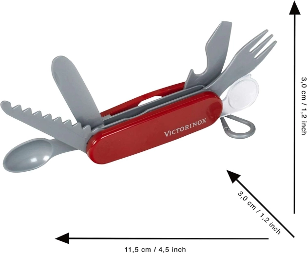 Dětský kapesní nůž VICTORINOX od KLEIN je věrná, ale zcela bezpečná napodobenina legendárního švýcarského nože. Díky preciznímu zpracování, červené rukojeti s logem a praktickému karabineru si jej mohou malí dobrodruzi připnout třeba k opasku a mít jej vždy po ruce.