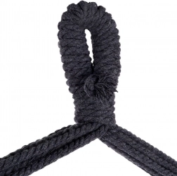 Rozpěra o délce 90 cm drží sedák otevřený a stabilní, silné opletené šňůry zajišťují bezpečné zavěšení v jednom bodě.