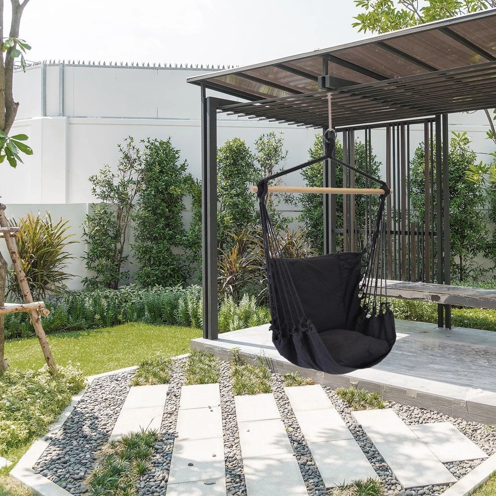 Závěsné křeslo typu hamaka je skvělou volbou pro balkon, terasu, zahradu i interiér. Díky montáži do jediného bodu se vejde tam, kde se klasický hamak nevejde, zároveň poskytne stabilní a příjemné houpání. Součástí je měkký polštář pro vyšší komfort zad.