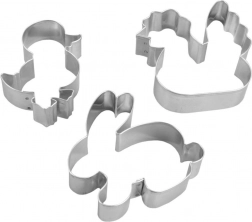 Tato sada tří vykrajovátek je ideální pro velikonoční pečení i celoroční tvoření. Nerezová ocel v elegantním stříbrném provedení zaručuje dlouhou životnost a čisté řezy do těsta, fondánu i dalších surovin. Díky pohodlnému tvaru se s vykrajovátky pracuje rychle a přesně, takže je ocení i začátečníci a rodiny s dětmi.