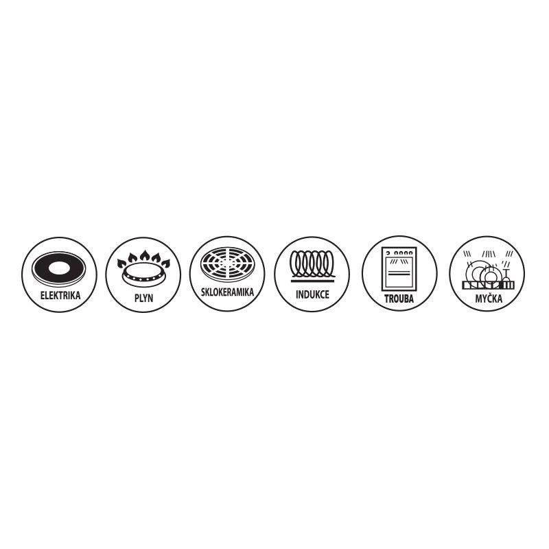 - Univerzální použití: plyn, elektřina, sklokeramika, halogen, indukce, trouba.