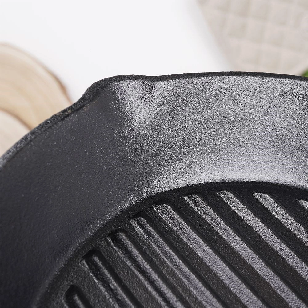 Masivní litinové tělo se zahřívá rovnoměrně a udrží vysokou teplotu pro perfektní zatažení masa i křupavou kůrku.