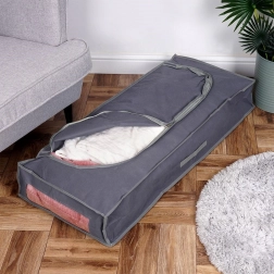Maximalizujte úložný prostor doma s prostorným vakem v šedé barvě, který je navržený pro praktické uložení ložního prádla a sezónního oblečení. Prodyšný materiál pomáhá cirkulaci vzduchu, zatímco zip po celé délce usnadní rychlé balení a vybalování. Díky nízkému profilu se skvěle vejde pod postel nebo kanapu.