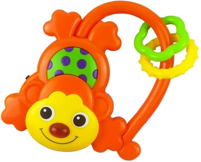 Dětské chrastítko Baby Mix ve tvaru veselé opičky je skvělým společníkem pro první objevování. Po stisknutí tlačítka přehraje příjemnou melodii a zároveň zasvítí, čímž podněcuje zrak i sluch miminka. Barevné provedení a bezpečné zrcátko motivují k prohlížení a zkoumání.