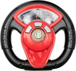 Tlačítka na volantu přehrávají různé melodie a motivují děti k jízdě i hraní. Napájení 2× AA (nejsou součástí balení).