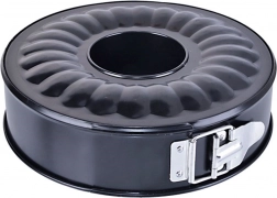 Univerzální kulatá forma na pečení se dvěma vyměnitelnými dny nabízí vše pro dokonalé dorty i bábovky. Díky rozepínacím okrajům se hotové pečivo snadno vyjímá, nepřilnavý povrch zajistí čisté pečení bez vymazávání a posypávání. Set obsahuje ploché dno pro dortovou formu o průměru 28 cm a výšce 7 cm a dno s komínem pro formu na bábovku o průměru 28 cm a výšce 8,5 cm. Odolná konstrukce zvládne teploty až 200 °C a je vhodná do plynových i elektrických trub.