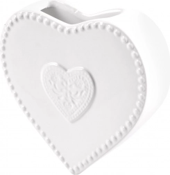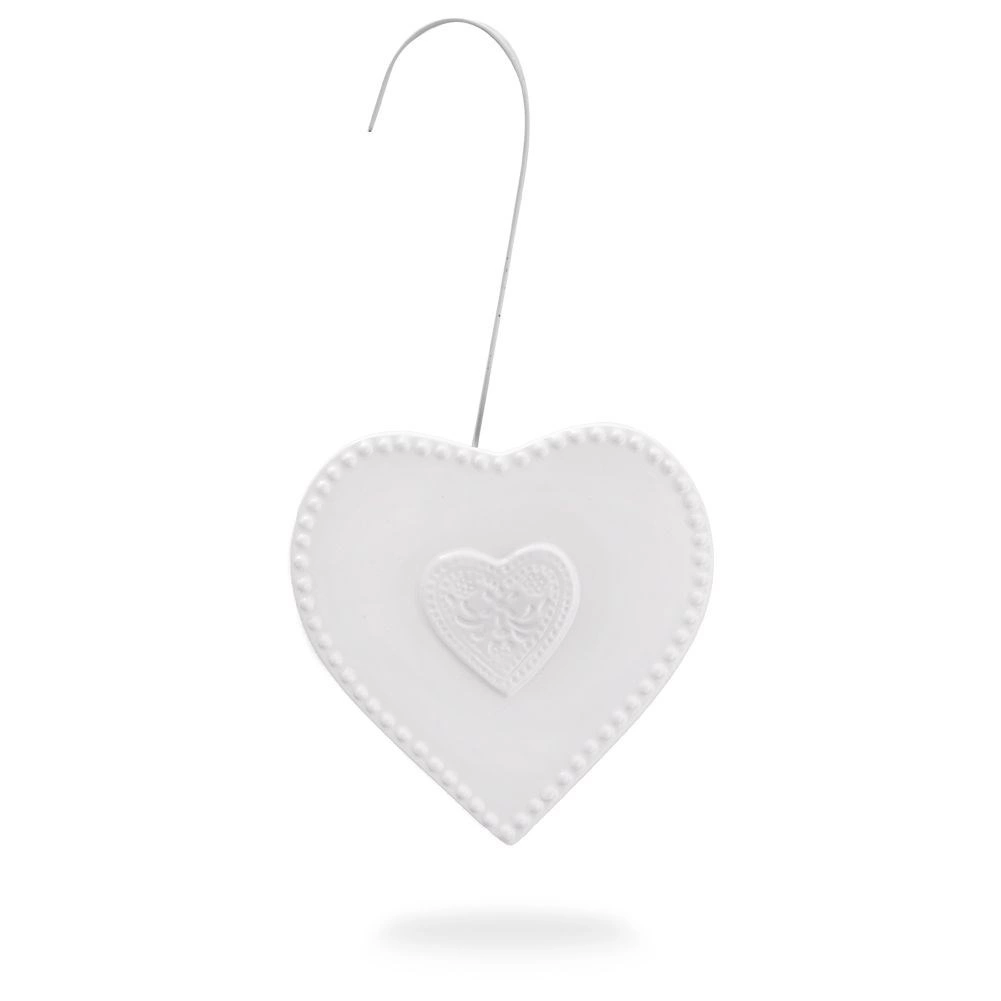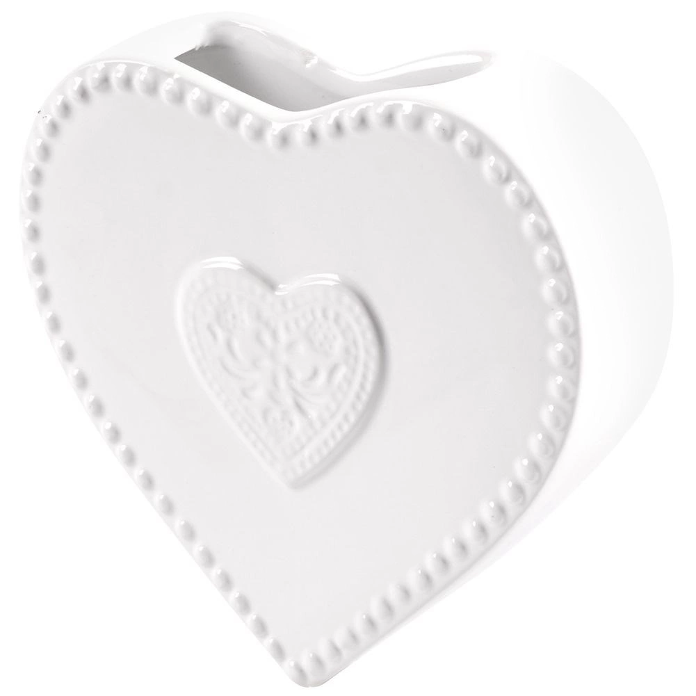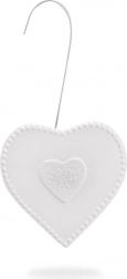 Bílá glazura, perlový okraj a plastický motiv srdce dodají topení i místnosti elegantní vzhled.