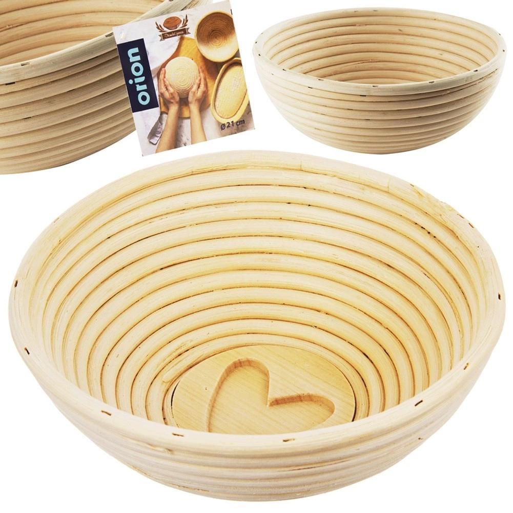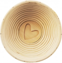 Kulatá ratanová ošatka o průměru 21 cm s dekorativním srdcem pomůže vašemu těstu krásně vykynout a udržet tvar tradičního bochníku. Z přírodního ratanu v béžové barvě pro rovnoměrné kynutí a typické spirálové vzory. Ideální na bochník cca 1,2 kg (cca 600 g mouky), skvělá pro domácí i profesionální pečení.