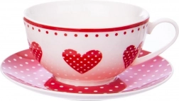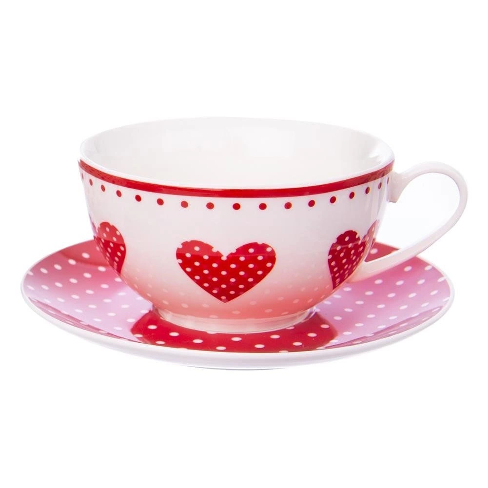 - Romantický design: bílý porcelán s červenými puntíky a srdíčky pro útulnou atmosféru.