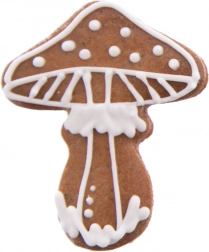 Tvar muchomůrky přímo vybízí k hravému zdobení cukrovou polevou. Puntíky a linie zvýrazní tvar a dodají cukroví půvabný vzhled.