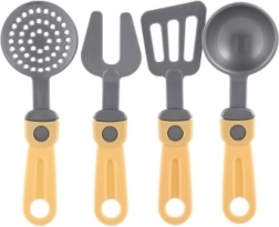 Sada obsahuje tři hrnce s víčky a čtyři různé kuchyňské nástroje, ideální pro různé druhy imaginární kuchařské činnosti.