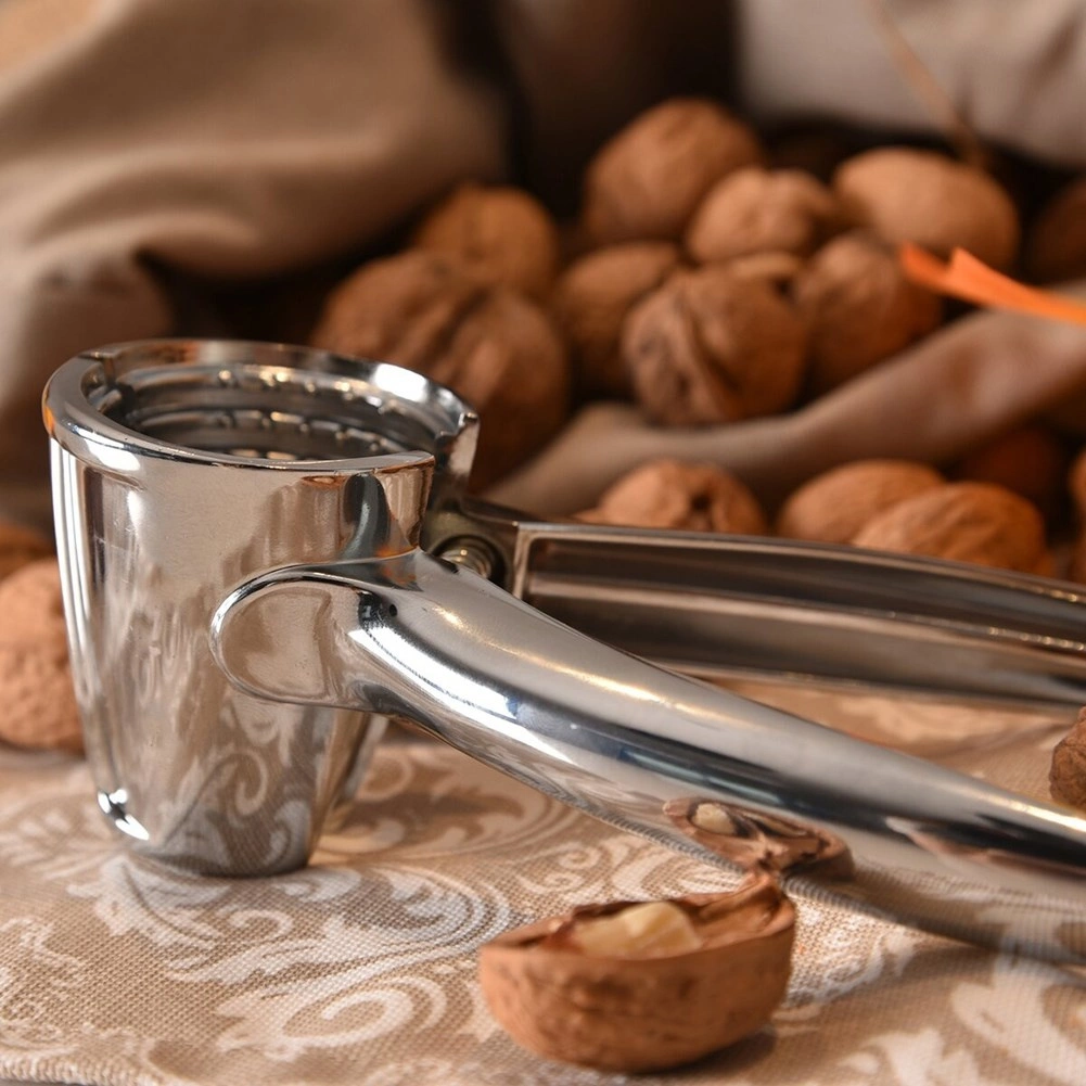 Praktická konstrukce s dlouhými rukojeťmi poskytuje vysokou páku pro efektivní louskání vlašských, lískových, mandlí, pekanových i arašídů. Integrovaná pružina pomáhá kontrolovat zavírání a předchází nechtěnému otevření. Nástroj je šetrný k rukám a usnadňuje práci i při větším množství ořechů.