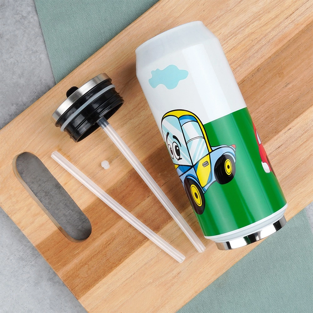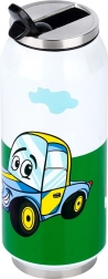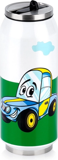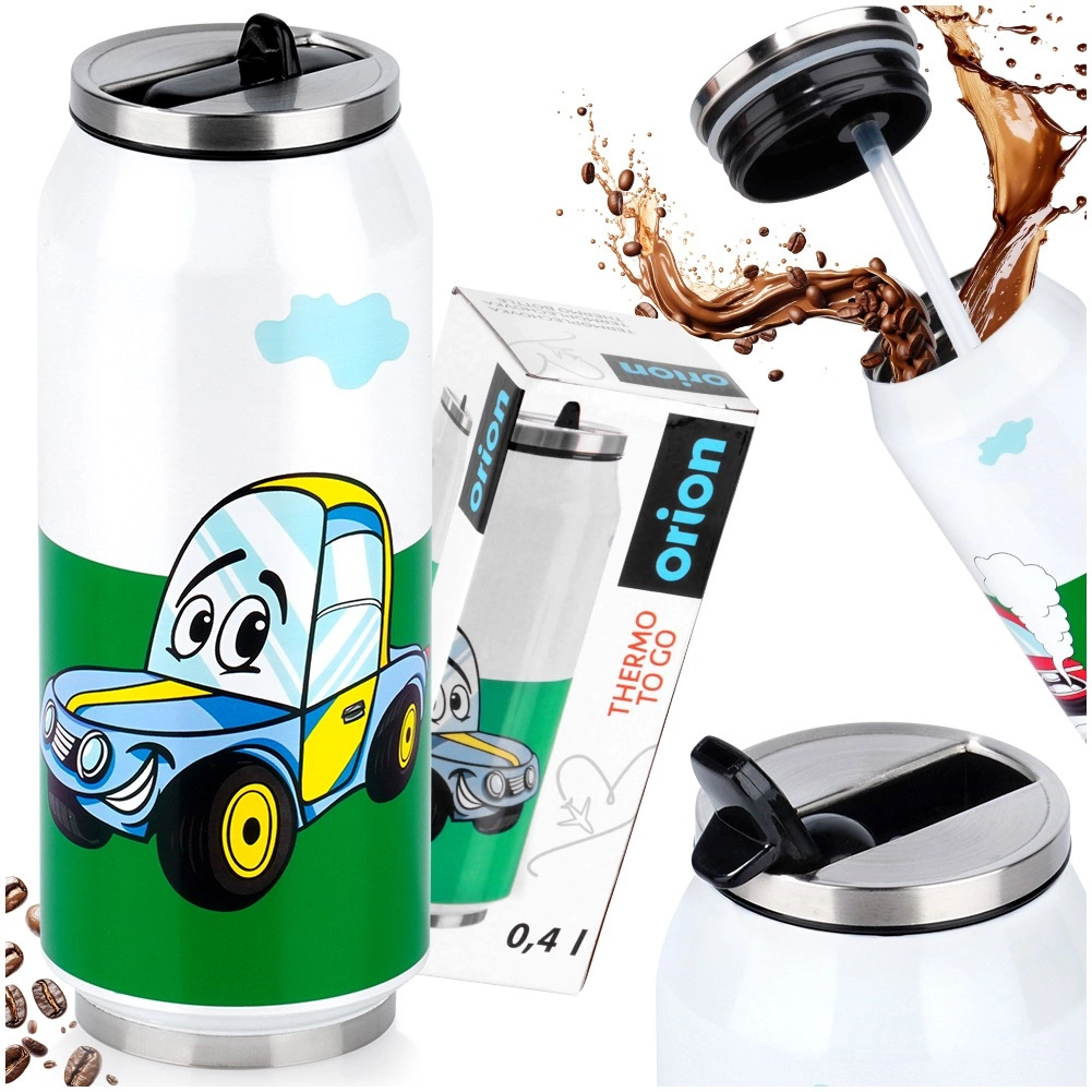 Stylový termohrnek ve tvaru plechovky o objemu 400 ml udrží vaše nápoje dlouho teplé i studené díky vakuové dvoustěnné izolaci. Je vyroben z nerezové oceli, má nepropustné víčko s výklopným náustkem a brčkem, takže můžete pít bez naklánění. Veselý motiv autíček potěší děti i dospělé a hrnek je ideální na cesty, do školy i do práce.