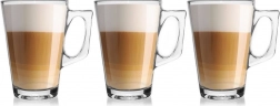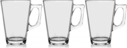 Elegantní sada tří sklenic o objemu 240 ml potěší milovníky kávy i čaje. Každá sklenice je z odolného skla s pohodlným uchem a má moderní tvar pro stylové servírování. Vhodné do myčky, ideální pro horké i studené nápoje. Odolné sklo, pohodlné ucho, univerzální použití, moderní design.