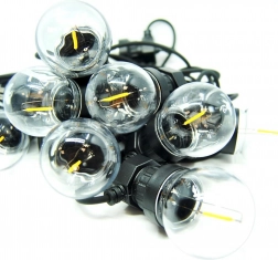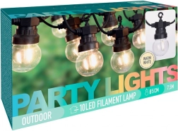 Stylová světelná girlanda o délce 7,5 m s 10 LED žárovkami o průměru 5 cm vytvoří teplé ambientní osvětlení na terase, balkoně i na zahradě. Nabízí univerzální použití uvnitř i venku, snadnou instalaci díky háčkům na každé objímce a úsporný provoz. Napájení ze sítě, IP44 pro venkovní použití.
