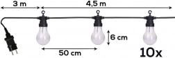 - 10 LED žárovek o průměru cca 6 cm, rozestupy mezi žárovkami cca 50 cm.