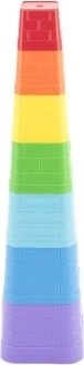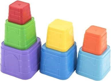 Barevná skládací věž Technok Kubus z pevných plastových kostek rozvíjí jemnou motoriku, prostorovou představivost i trpělivost. Obsahuje 7 hranatých dílů, které do sebe přesně zapadají. Děti si s ní užijí spoustu zábavy doma, na písku i ve vodě. Snadné skládání, učení barev a velikostí, stabilní pyramida vysoká až 38 cm a bezpečné provedení od 12 měsíců.