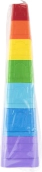 Sedm hranatých kostek v pestrých barvách se snadno skládá do stabilní věže a podporuje koordinaci i trpělivost.