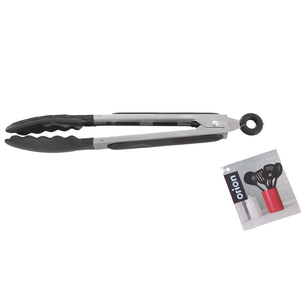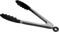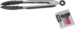 Praktické kuchyňské kleště se skvěle hodí k otáčení, servírování i nabírání pokrmů. Robustní tělo z nerezové oceli zajišťuje stabilní úchop, zatímco silikonové vroubkované koncovky bezpečně drží potraviny a nepoškrábou teflonové, keramické ani jiné nepřilnavé povrchy. Integrované očko funguje jako závěs i zámek pro úsporné skladování.