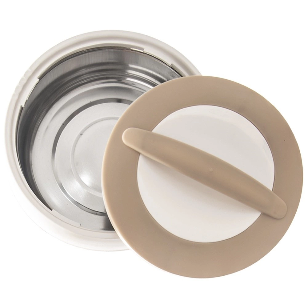 Užijte si teplý oběd kdekoliv – termomísa COSMOS kombinuje vnější odolný plast a vnitřní vložku z nerezové oceli pro spolehlivou tepelnou izolaci. Snadno se zavírá pootočením víka a díky praktickému madlu se pohodlně přenáší. V létě skvěle poslouží i pro uchování studených dezertů a zmrzliny.