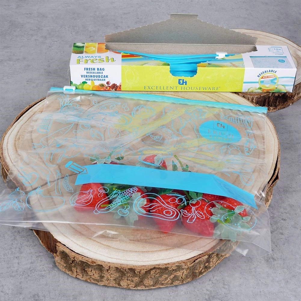 Udržte potraviny déle čerstvé se znovuuzavíratelnými sáčky o objemu 3 litry a rozměrech 28,5 × 27 cm. Spolehlivý jezdec zajišťuje vzduchotěsné uzavření, takže jsou vhodné do lednice i mrazáku. Transparentní provedení doplňuje praktická plocha pro popis, abyste vždy věděli, co a kdy jste uložili.