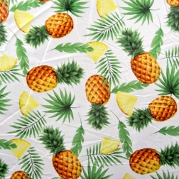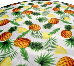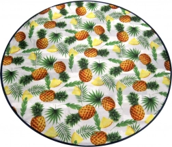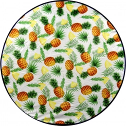 Kulatý tvar a motiv ananasů s palmovými listy dodají vašemu dni u vody i v parku svěží letní náladu.