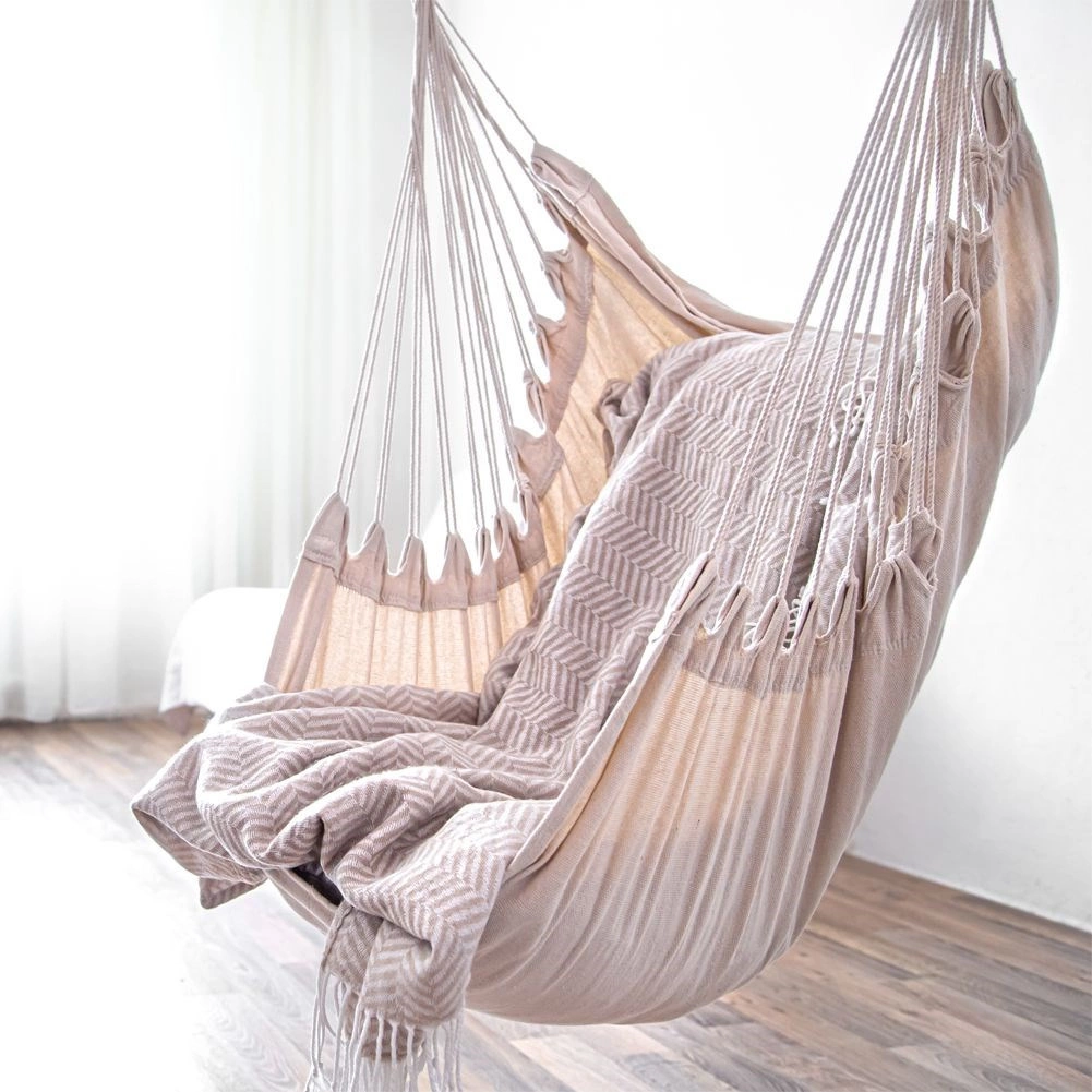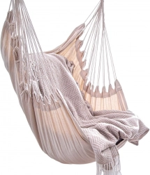 Odolná směs 60 % bavlny a 40 % polyesteru je příjemná na dotek, ale zároveň trvanlivá a nenáročná na údržbu. Montáž do stropu nebo na trám je rychlá a intuitivní. Křeslo je ideální alternativou ke klasické hamace, pokud nemáte prostor na dva kotvící body.