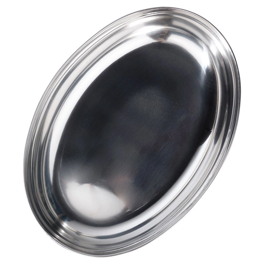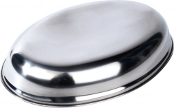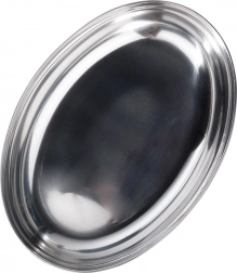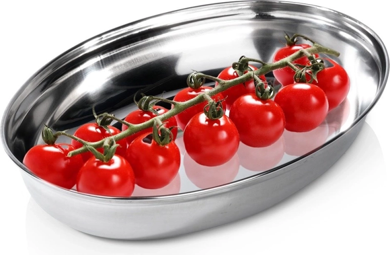 Praktický a stylový oválný servírovací tác s hlubokým profilem je vyroben z nerezové oceli v elegantním stříbrném provedení. Odolá nárazům a běžnému zacházení, takže je skvělou alternativou ke skleněným mísám a talířům. Hladký povrch se snadno udržuje v čistotě a je bezpečný pro kontakt s potravinami.