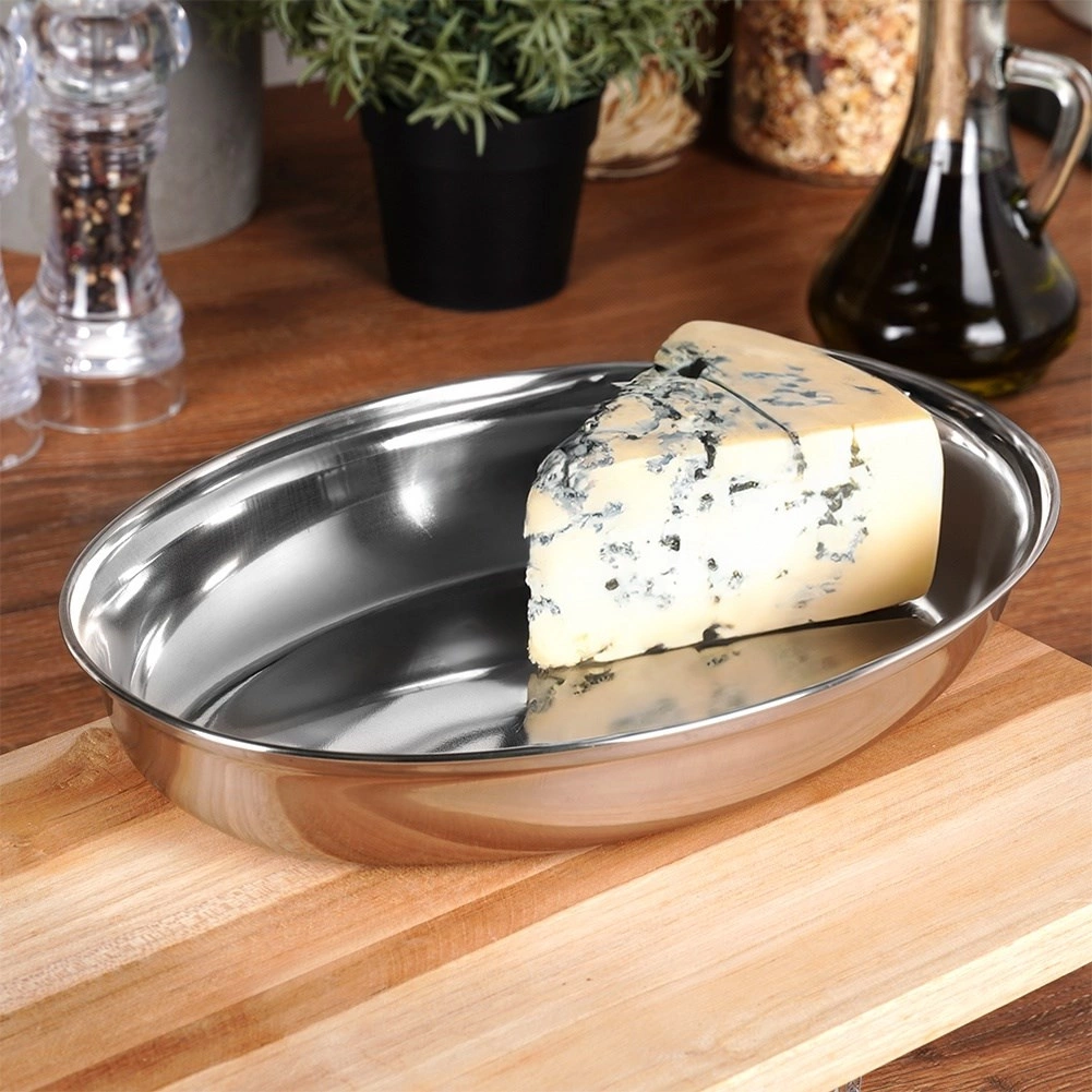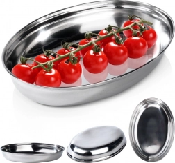 Elegantní oválný tác z kvalitní nerezové oceli o rozměrech 25,5 × 18 × 4 cm je ideální pro servírování jídel, předkrmů a občerstvení. Díky odolnému materiálu je nerozbitný, hygienický a snadno se čistí, což oceníte v domácnosti i profesionální gastronomii. Univerzální využití v kuchyni, na zahradní párty i na cestách.