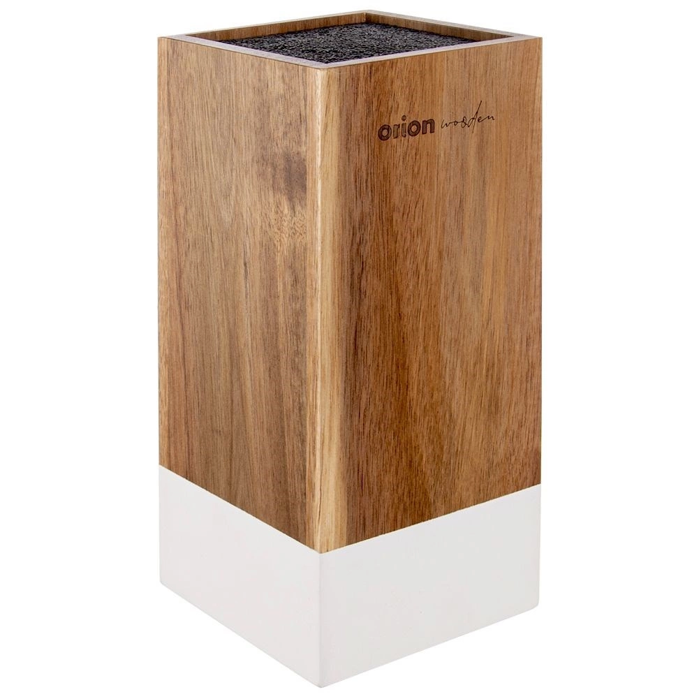 Praktický a designový blok na nože Whiteline je vyroben z kvalitního akáciového dřeva a doplněn bílým dekoračním pruhem. Díky hustému vyjímatelnému plastovému vlásí bezpečně uložíte ocelové, keramické i kombinované nože bez rizika otupení. Kompaktní tvar šetří místo na pracovní desce a udrží vaše kuchyňské náčiní vždy po ruce.