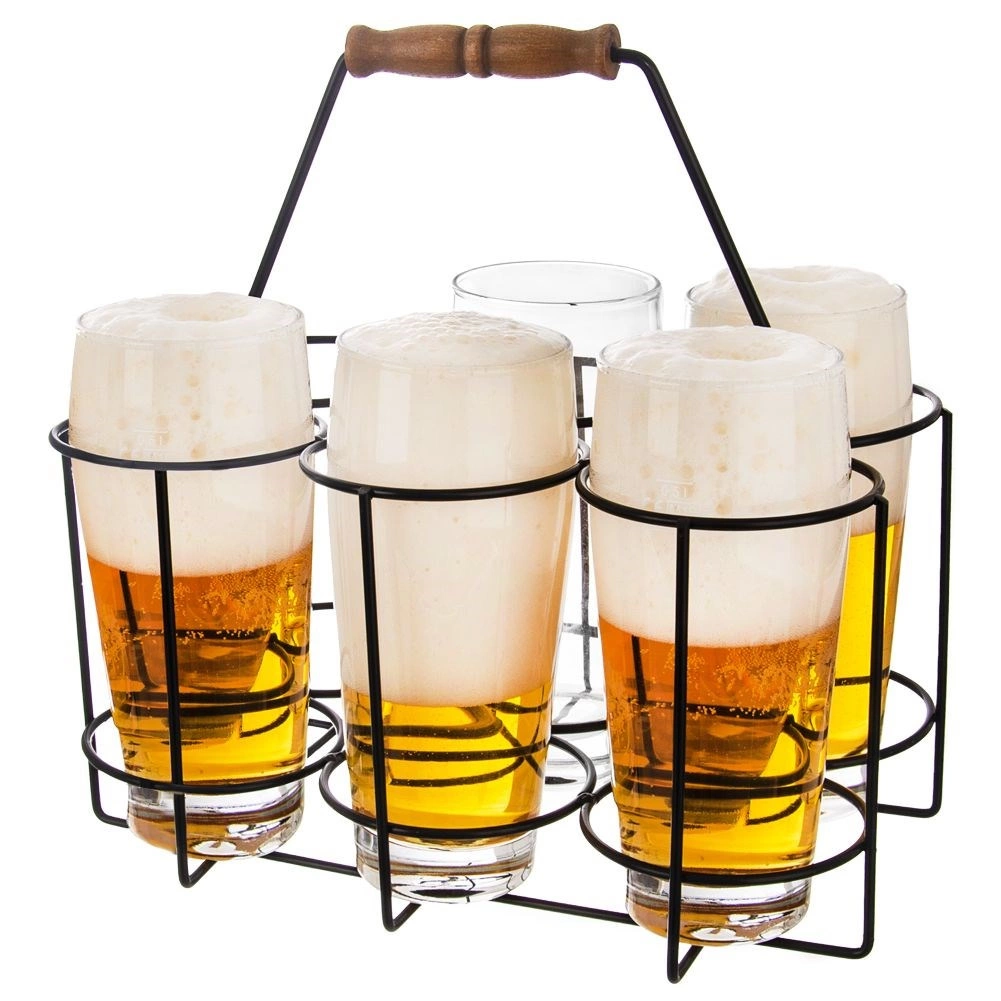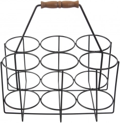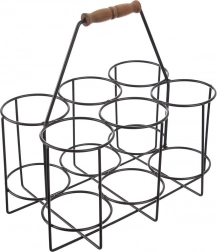Odolný kovový košík na přenášení lahví či sklenic nabízí bezpečnou organizaci a pohodlnou manipulaci. Šest samostatných kroužkových držáků udrží nádoby pevně na místě, zatímco dřevěná rukojeť zajišťuje komfortní úchop. Skvělé řešení pro domácnost, zahradu, terasu i servírování nápojů při grilování.