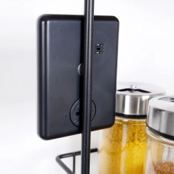 Odolné plastové provedení v elegantní stříbrné barvě s černou zadní stranou je lehké a trvanlivé. Zadní magnet umožní upevnění na lednici, troubu či jiný kovový povrch, případně jej můžete nechat volně stát na pracovní desce.