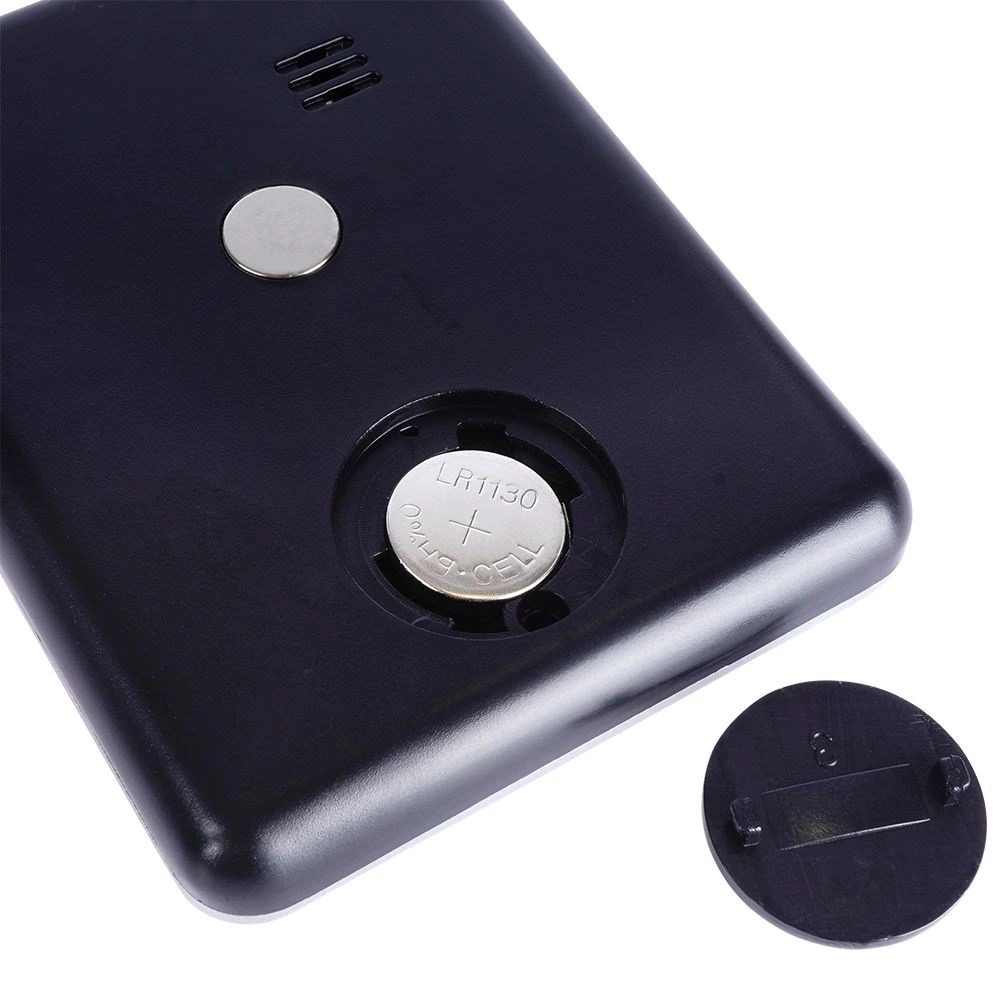 Součástí je knoflíková baterie AG10 (LR1130). Jednoduchá výměna díky snadno přístupnému krytu.