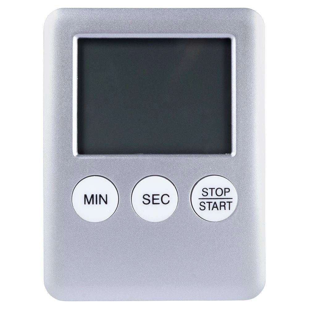 Kompaktní digitální minutka s velkým LCD displejem a jednoduchým ovládáním vám spolehlivě pohlídá čas vaření i pečení. Nabízí rozsah 00:01–99:59 (mm:ss), hlasitou zvukovou signalizaci, praktický magnet pro uchycení na kovové povrchy a napájení z baterie AG10 (součást balení). Lehká, odolná a snadno čitelná i pro osoby se slabším zrakem.