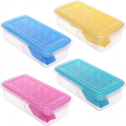 Praktické víčko brání rozlití vody při přenášení a chrání led před pachy z mrazáku. V sadě je také lopatka pro čisté a pohodlné nabírání. Formu lze využít i na mražení džusů, sorbetů či bylinek. Barva je dodávána náhodně.