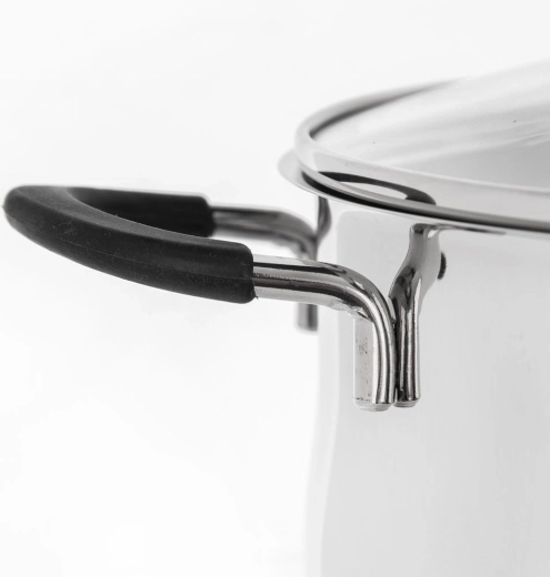 Ergonomické rukojeti se silikonovým povrchem zůstávají chladné, skleněná poklice s nerezovým okrajem a ventilem páry zajišťuje přehled i kontrolu varu. Odolná konstrukce s masivními stěnami je vhodná pro domácí i profesionální kuchyně a elegantně poslouží i při servírování přímo na stůl.