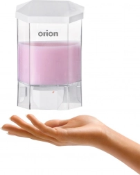 Nástěnný dávkovač mýdla ORION je odolné a elegantní řešení pro každodenní hygienu. Kombinace transparentního těla a bílé horní části se snadno udržuje, působí čistě a hodí se do moderních interiérů. Díky montáži na zeď budete mít mycí prostředek vždy po ruce a pracovní plocha zůstane volná.
