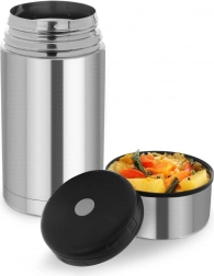 Široké hrdlo usnadňuje plnění i čištění, šroubovací víčko s těsněním zaručuje perfektní těsnost a bezpečné přenášení. Horní víčko lze využít jako misku/kelímek, takže se pohodlně najíte kdekoliv – v kanceláři, ve škole, na výletech i při cestování.