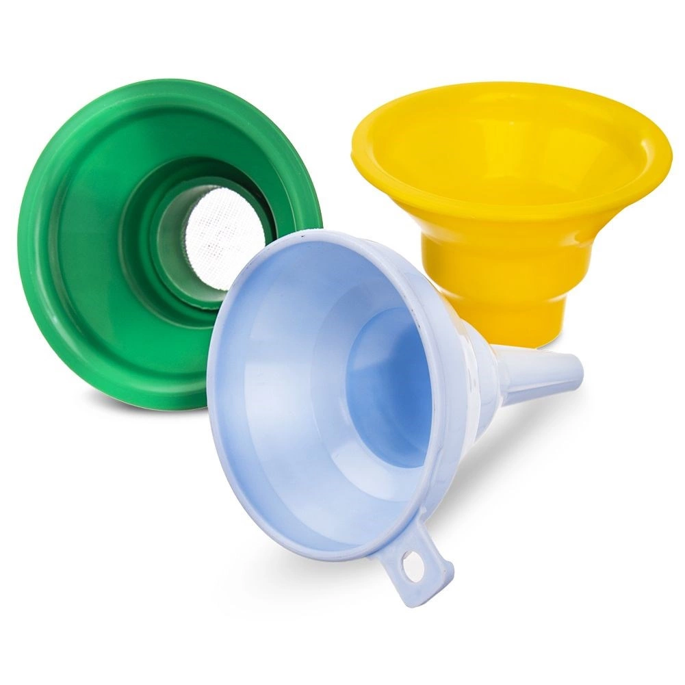 Široké hrdlo a úzký náustek usnadňují proudění tekutin do nádob s úzkým hrdlem, omezuje cákání a nepořádek.