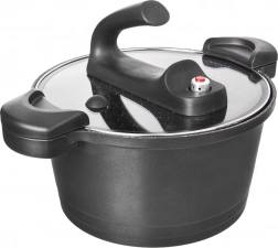 Tlakový hrnec GRANDE kombinuje rychlost, úsporu energie a komfort. Silné hliníkové tělo s granitovou nepřilnavou vrstvou PFLUON GRANIT brání připalování i při minimálním množství tuku, což usnadňuje zdravější vaření i čištění. Průhledná poklice umožní kontrolu vaření a lze ji v průběhu přípravy snadno sejmout.
