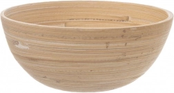Miska je vyrobena z kvalitního bambusového dřeva s hladkým povrchem a viditelnými kruhovými léty, které podtrhují přírodní vzhled každého kousku.