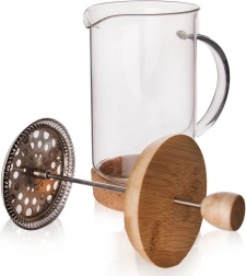 Tento designový french press spojuje čisté linie skla s přírodními akcenty bambusu a korku. Díky borosilikátovému sklu odolnému vůči teplotním šokům připravíte oblíbené horké i studené nápoje bezpečně a s maximální chutí. Precizní nerezový píst se sítkem oddělí sedlinu a umožní plnou extrakci aroma.