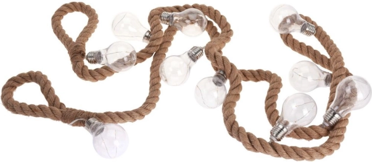 Lehká konstrukce se snadno instaluje a udržuje. Girlanda je skvělou volbou pro každodenní dekor, sváteční výzdobu i večerní posezení. Design s jutovým provazem krásně ladí se stylem boho, venkovským i skandinávským interiérem.