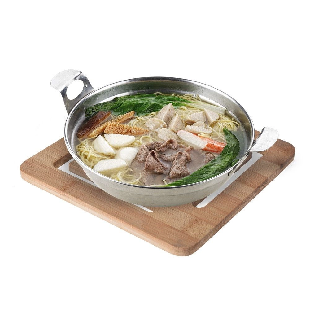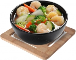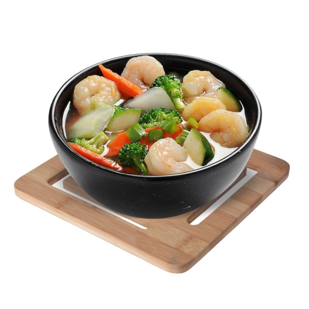 Čtvercový tvar 20 × 20 cm poskytuje jistotu pod miskami, hrnci i pánvemi a umožňuje komfortní servírování přímo u stolu.