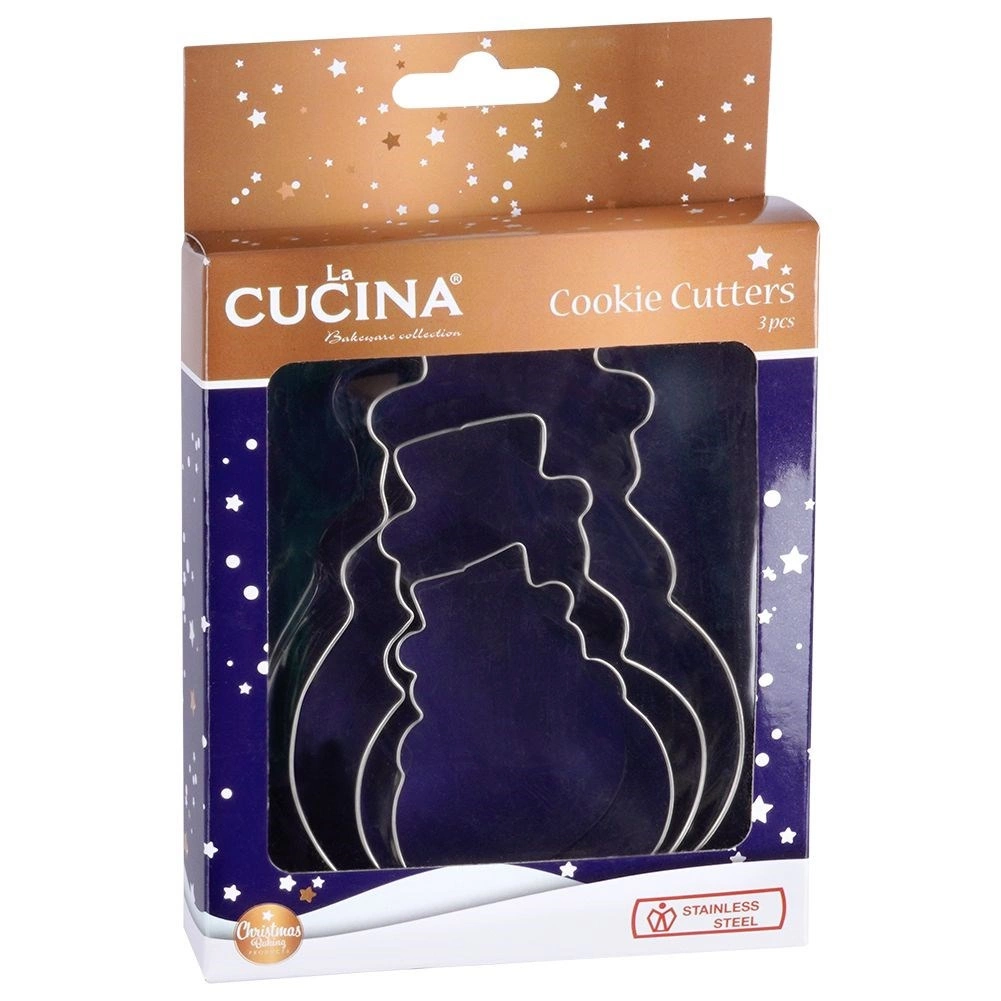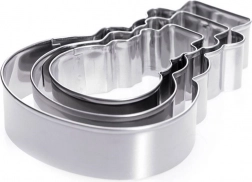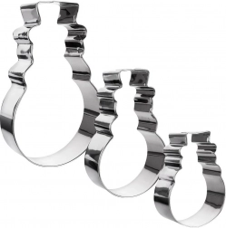 Sada tří kvalitních vykrajovátek ve tvaru sněhuláka potěší každého milovníka pečení. Vykrajovátka jsou vyrobena z odolné nerezové oceli, díky čemuž jsou pevná, hygienická a připravená na každoroční sváteční maraton. Tři praktické velikosti (velká 13 × 8,5 × 2,5 cm, střední 10 × 7 × 2,5 cm, malá 7,5 × 5 × 2,5 cm) umožní vytvářet efektní vrstvené dekorace i sady sušenek.